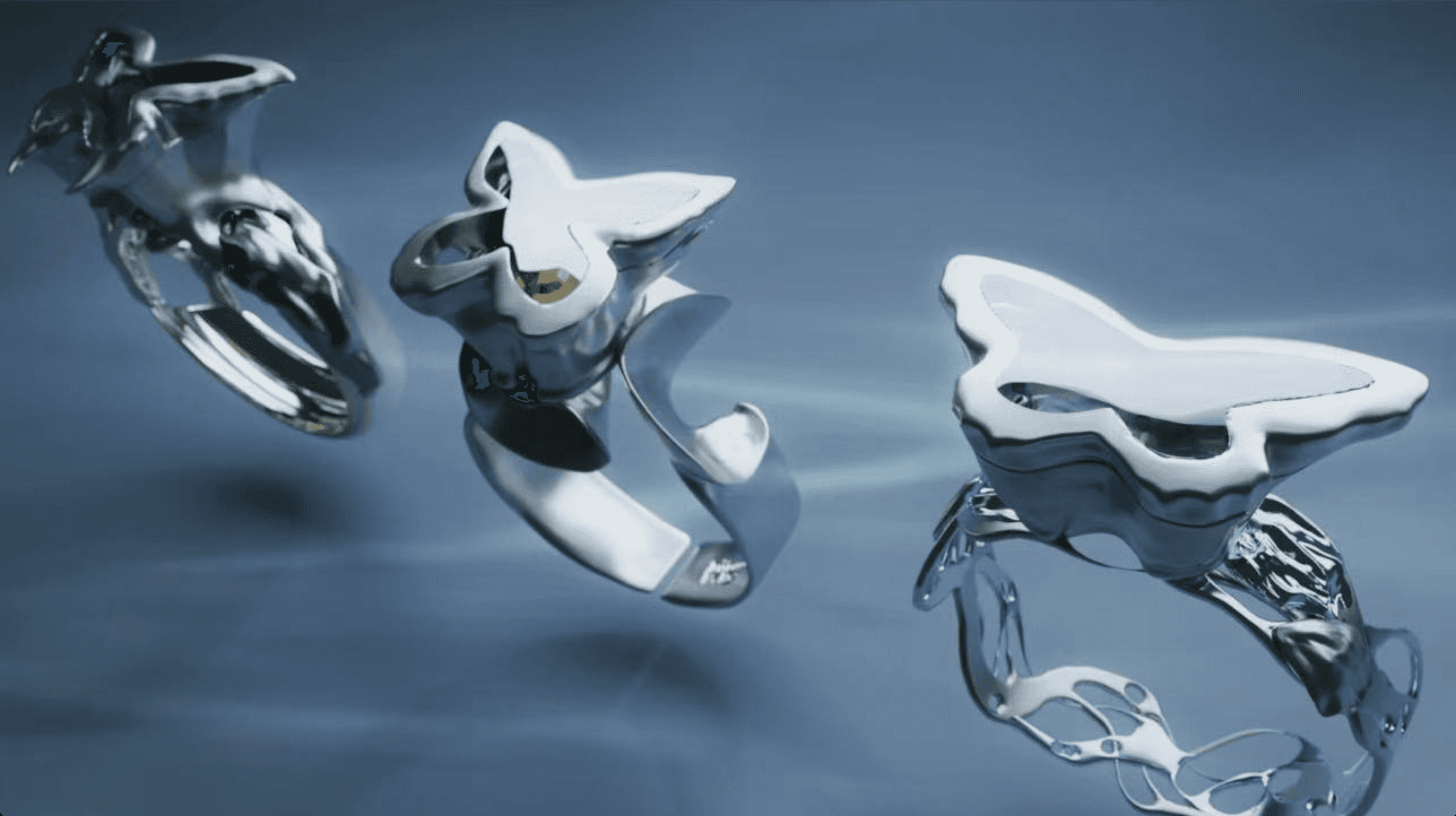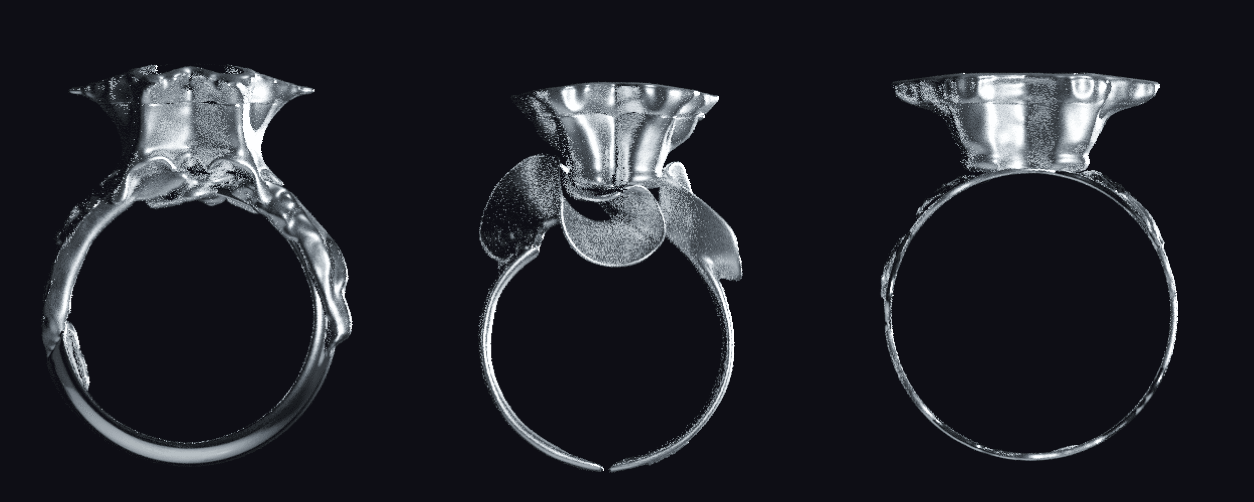 Based on the initial drawings, the rings were digitally sculpted to preserve a sense of fluidity while refining structure and proportion.