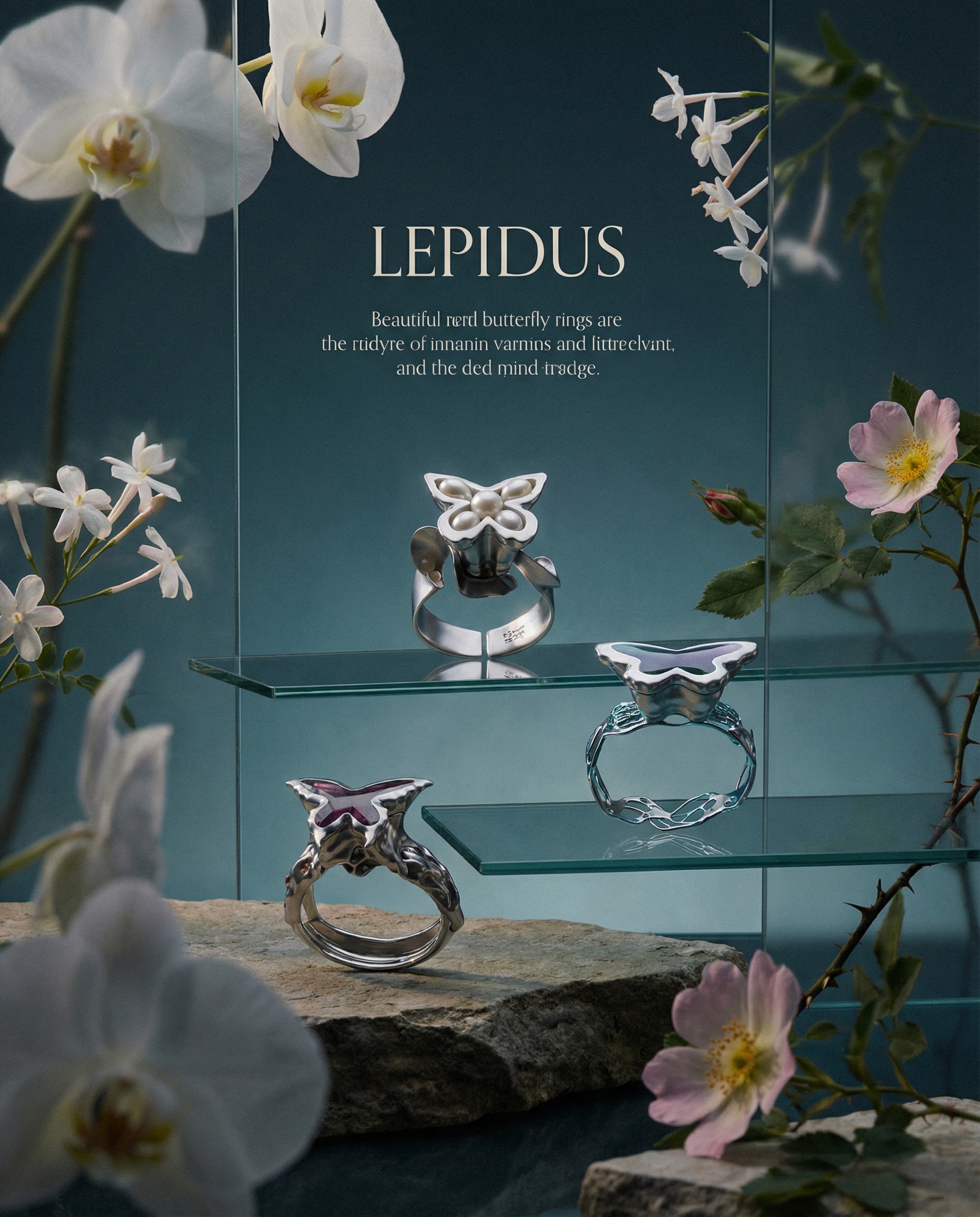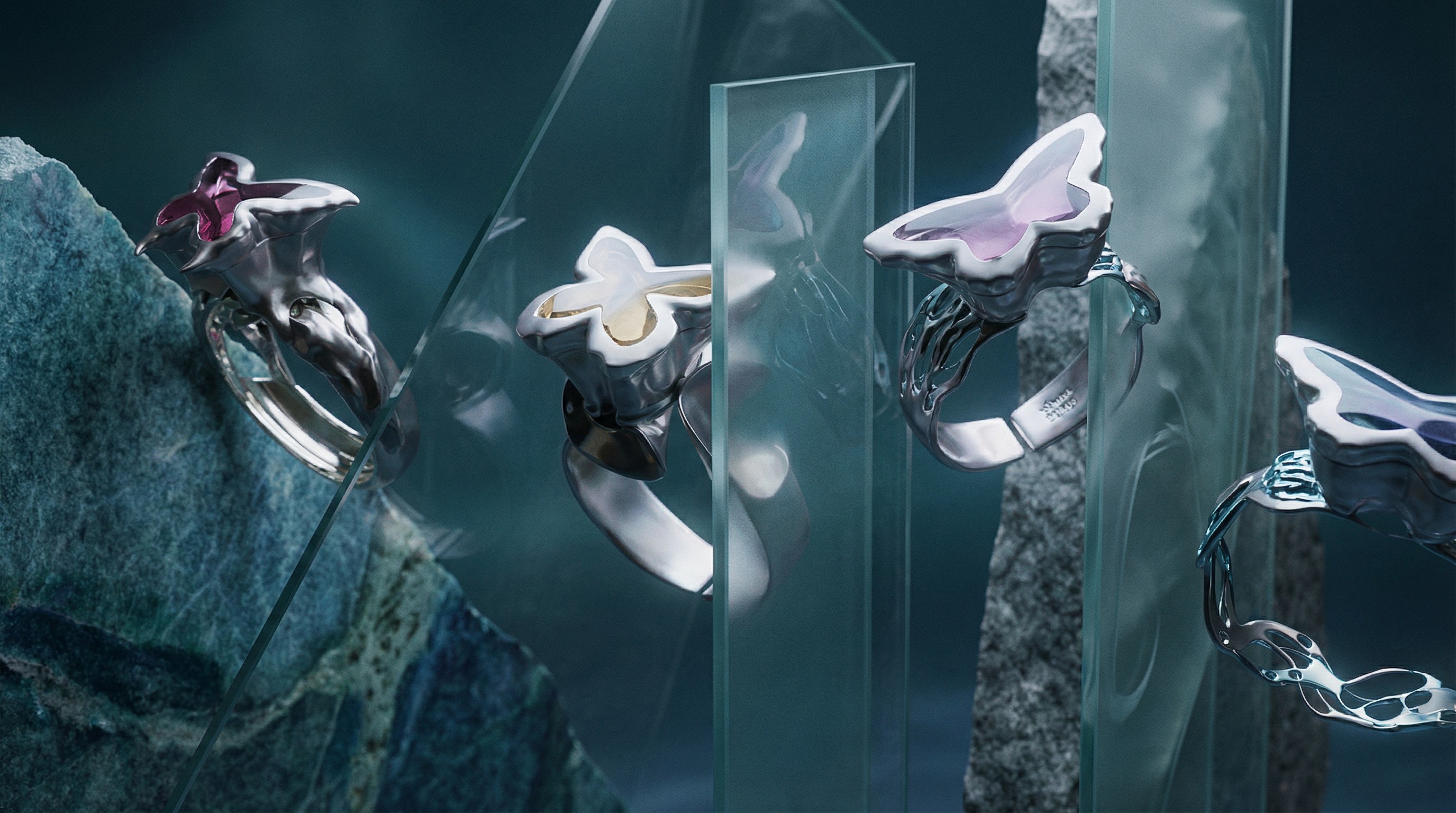 The butterfly motif was developed as a soft, evolving shape, balancing movement and stability.