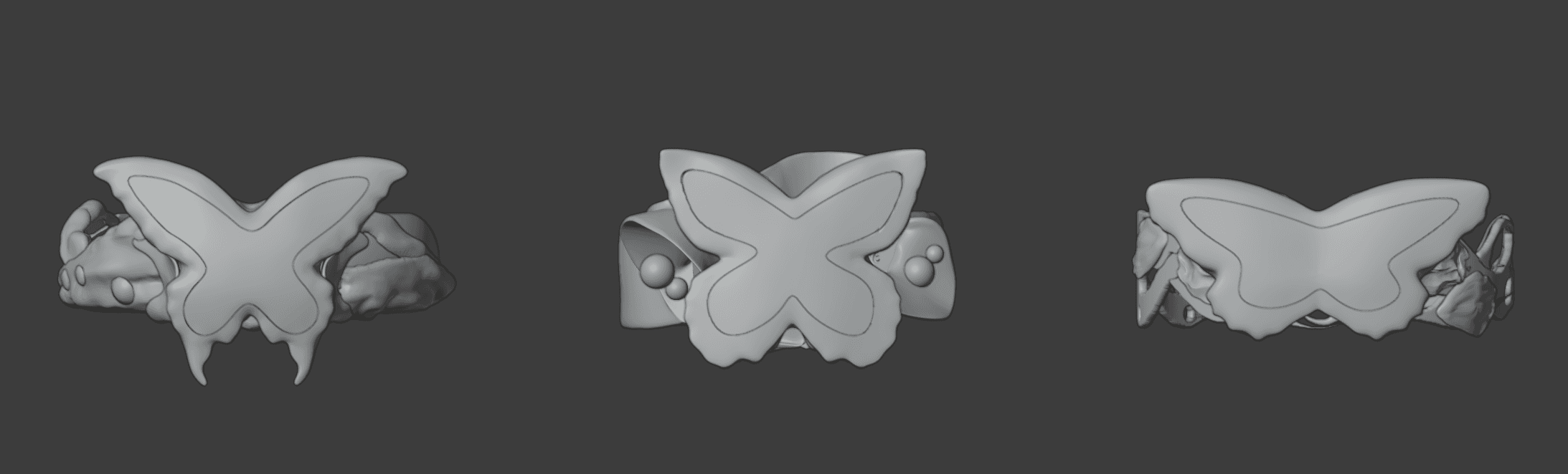 Different iterations explore how the butterfly silhouette integrates with varying band systems, from minimal to more expressive configurations.